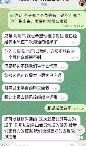 这么大的平台想黑人也找个正常点的理由,我辛辛苦苦拉人来玩,给你们创造盈利,到头来你们就要独吞黑我,真寒心