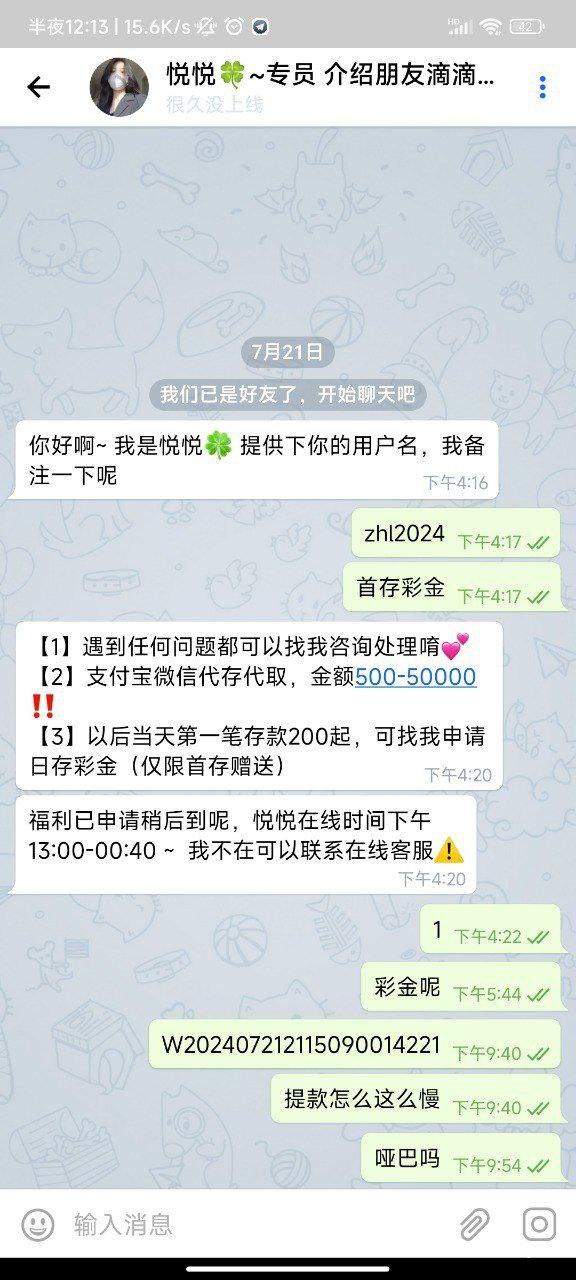 宝威体育欧洲杯后开始收割玩家,本人充值1000玩电竞跟百家乐赢到7000,平台一直卡审核,上级代理消息已读不回玩消失,彩金客服直接拉黑我,黑平台大家避雷。