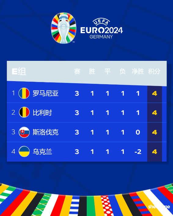 格鲁吉亚爆冷击败葡萄牙,首次参加欧洲杯就打进淘汰赛;E组第三轮两场均踢平,4队积分同为4分,净胜球最少的乌克兰成为出局倒霉蛋。