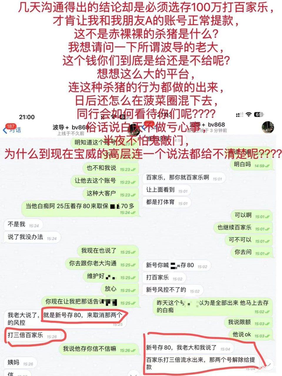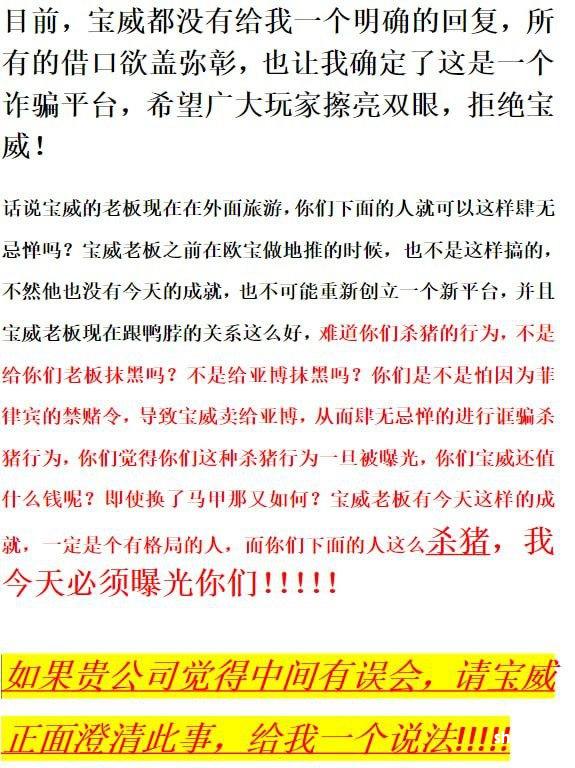 宝威杀猪盘 黑我120万人民币 出款告知需要再充100万进去才能出