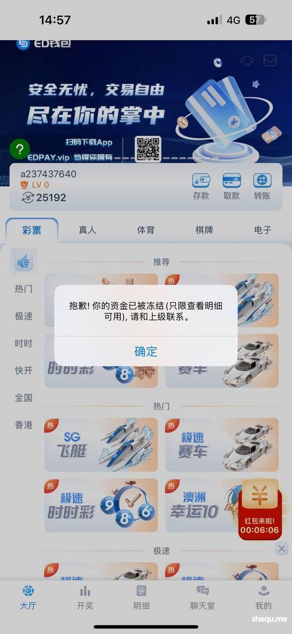 我抱着试试的心态 充值了1000元  1000元我觉得很少  就玩玩电子游戏算了   谁知道赢了23000块  在提款的时候  直接冻结了我的账户 不给我出款  我问客服 他说是我注单有问题  让我4天后咨询客服   我就等到9月3号又咨询了客服  9月3号又咨询客服 说等10号   这个平台妈的一点格局都没有  1000元人名币都黑  妈的 还不够我嫖娼呢  大家避雷。