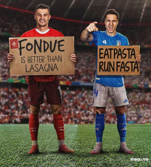 对阵瑞士之前,意大利主帅斯帕莱蒂在新闻发布会上说道:“巴斯托尼的情况有待评估,今天他进行了一些训练,这让我们松了一口气。另一方面,迪马尔科无法恢复,他不会出场。四后卫?是的,我们将采用类似四后卫的战术。我们必须在不失球的情况下加强进攻。”此外斯帕莱蒂还表示斯卡马卡无法融入球队,将启用小曼奇尼。